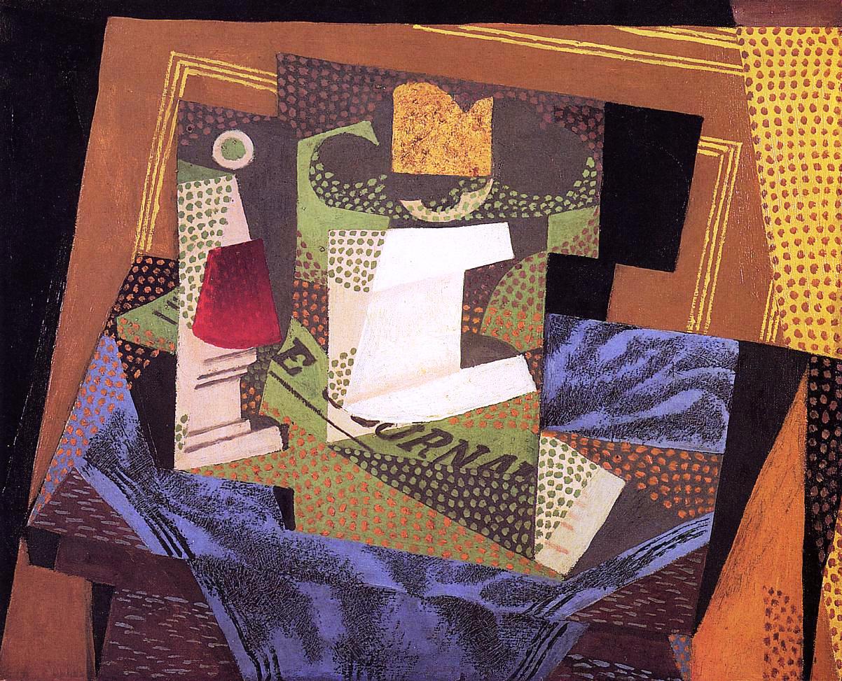 Fruit Dish, Glass and Newspaper